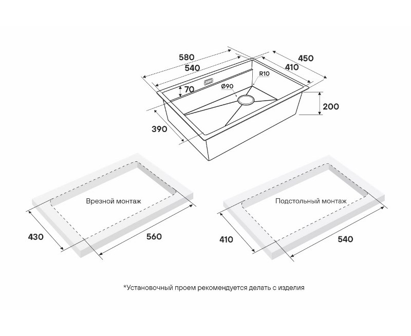 Мойка для кухни Paulmark Next-Multi Sink 58 Uni 58x45 PM785845-GM, под столешницу, вороненая сталь. Все характеристики |