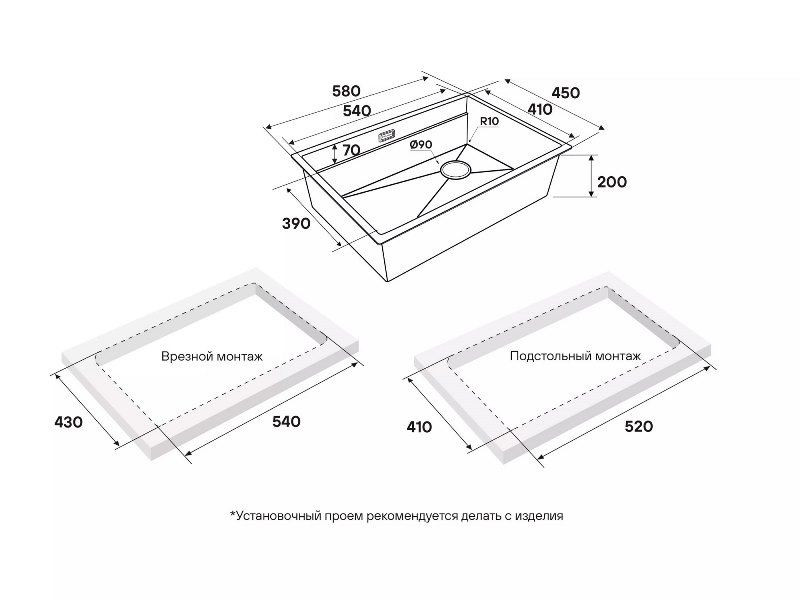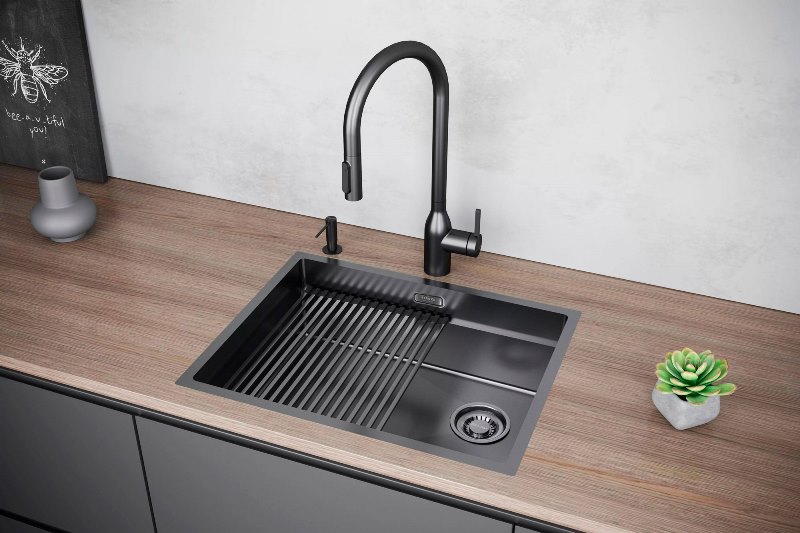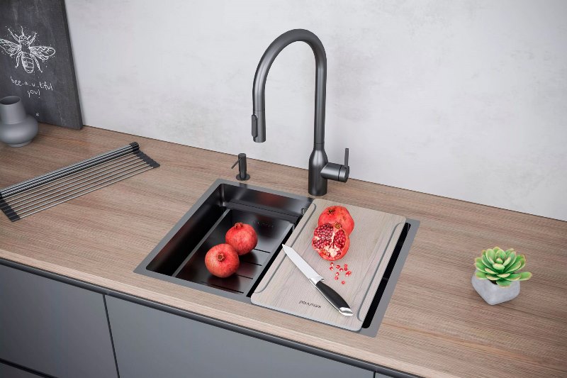 Мойка для кухни Paulmark Next-Pro 58 Uni 58x45 PM705845-GM, под столешницу, вороненая сталь. Все характеристики |
