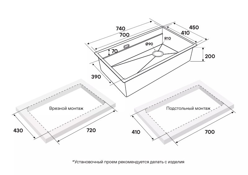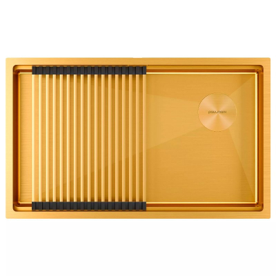 Раковина для кухни Paulmark Next-Pro 74 Uni 74x45 PM707445-BG, под столешницу из нержавеющей стали.Свойства. PVD покрытие. Нержавеющая сталь AISI 304 легирована 18% хрома и 8% никеля. Мойка имеет шумопоглощающее покрытие Stille® на внешней стороне чаши, устойчива к воздействию высоких температур, к образованию ржавчины, деформации, не задерживает загрязнения на поверхности, легка в уходе и чистке. Монтаж на столешницу, вровень со столешницей, под столешницу. Изображение и цвет на мониторе могут отличаться от оригинала. Комплектность: