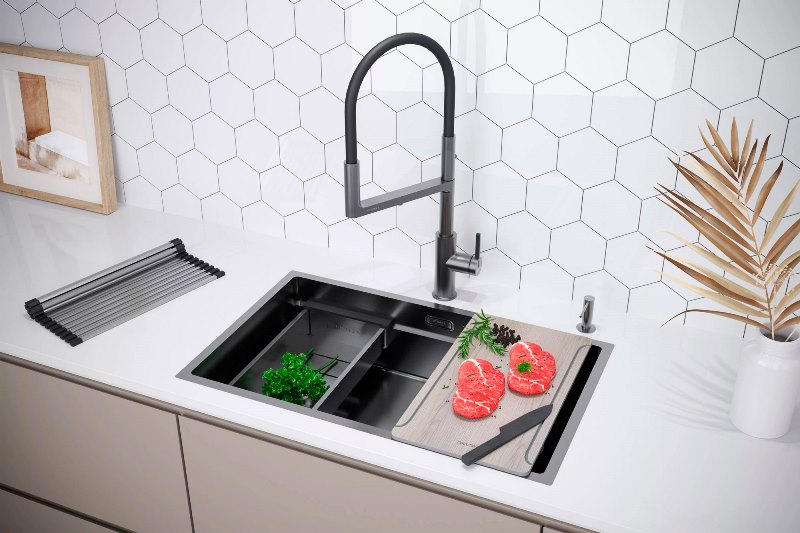 В комплекте: сифон, ролл-мат Pro, декоративная накладка, крепления.Дополнительно комплектуется: смеситель, коландер, разделочная доска. |