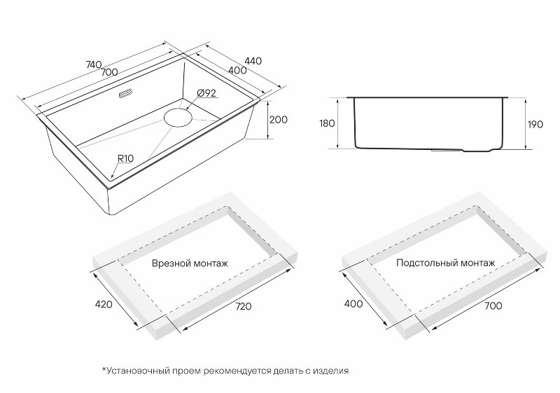 Мойка для кухни Paulmark Next-Skew 74 74x44 PM887444-LG, под столешницу, светлое золото. Все характеристики |