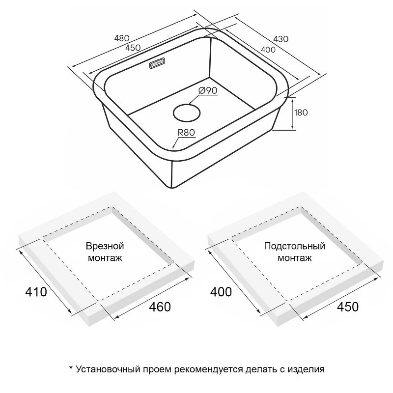 Мойка для кухни Paulmark Vello 44 Uni 44.6x44.6 VE44-MBN, под столешницу, четный матовый