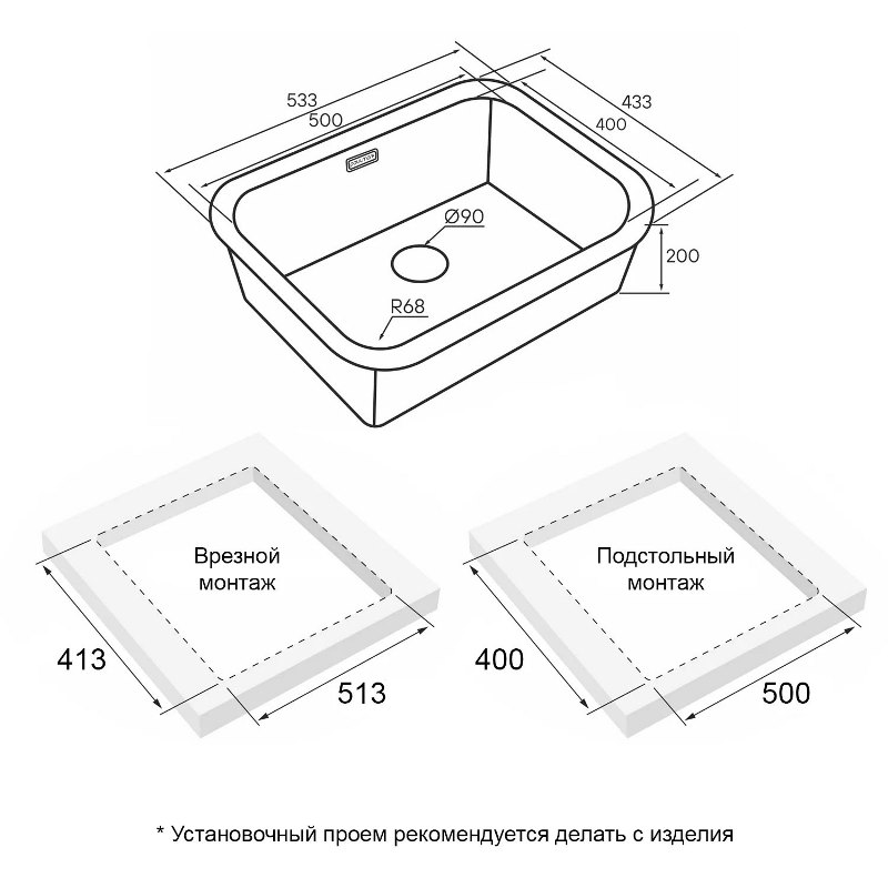 Мойка для кухни Paulmark Vello 53 Uni 53.3x43.3 VE53-MBN, под столешницу, четный матовый