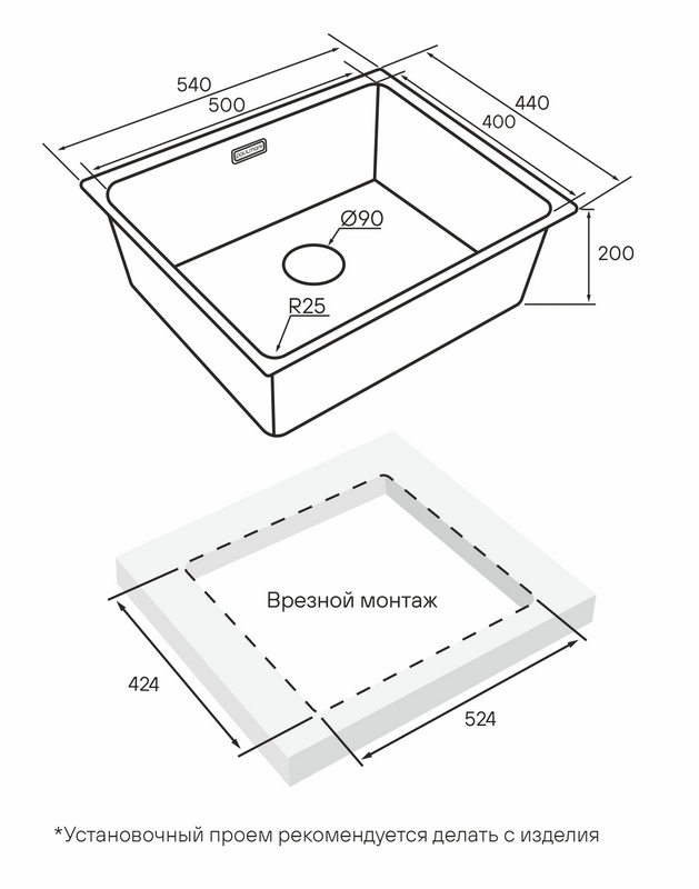 Мойка для кухни Paulmark Yuni 54 Uni 54x44 YU54-GM, под столешницу, воронен.сталь. Все характеристики |