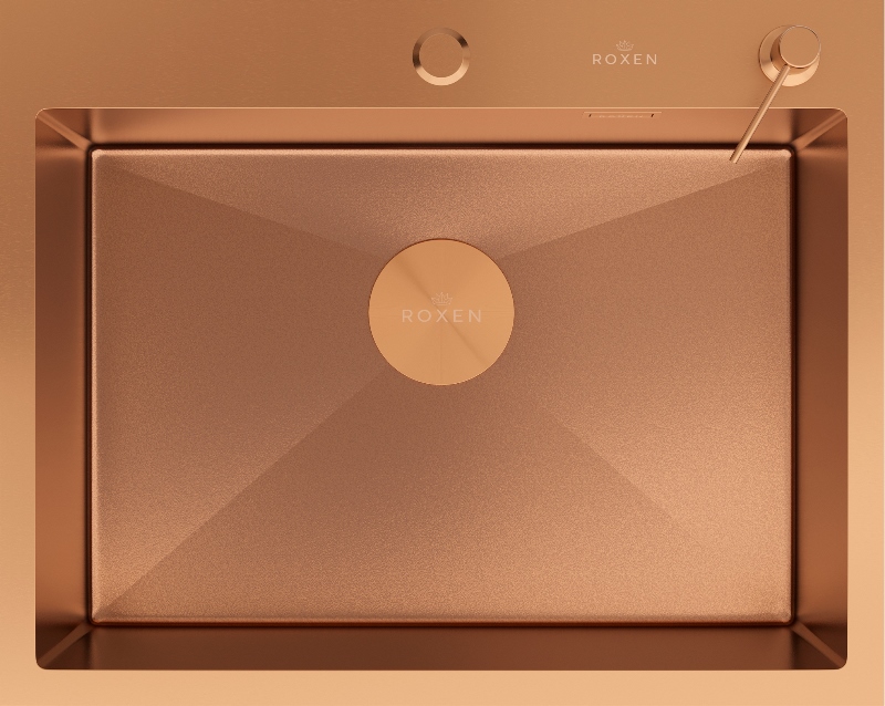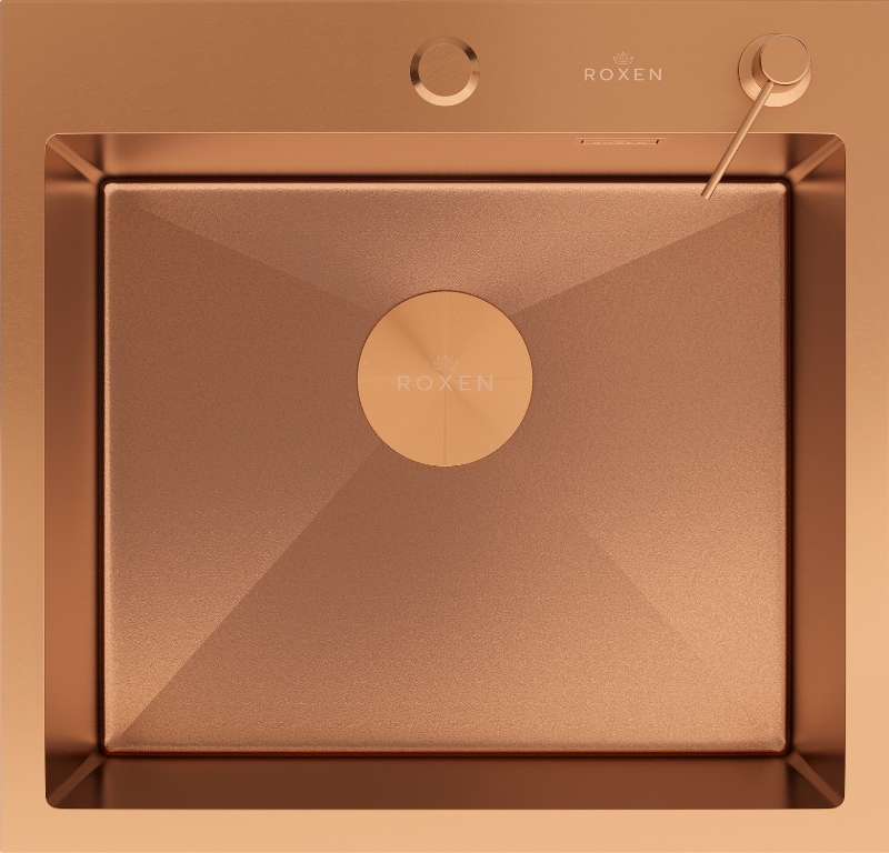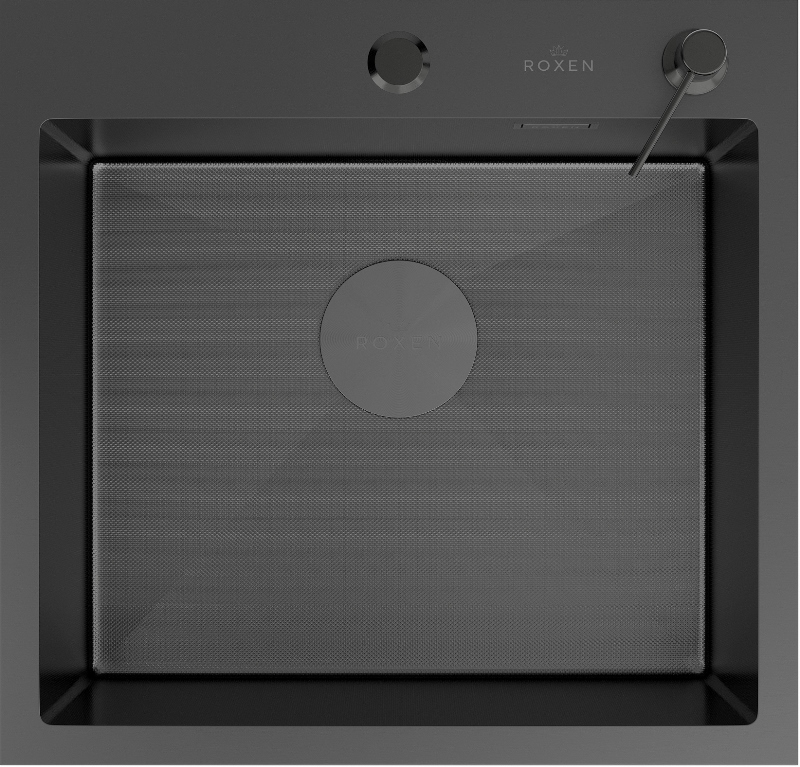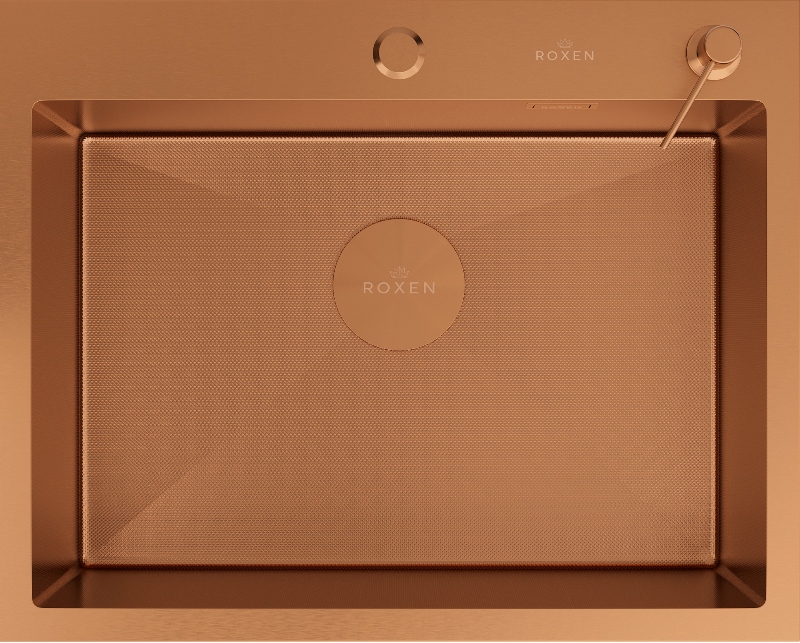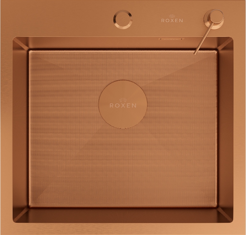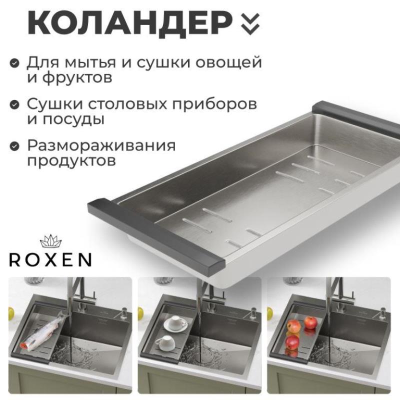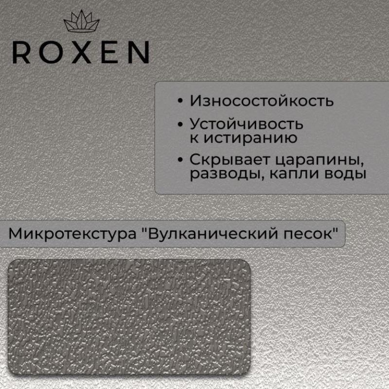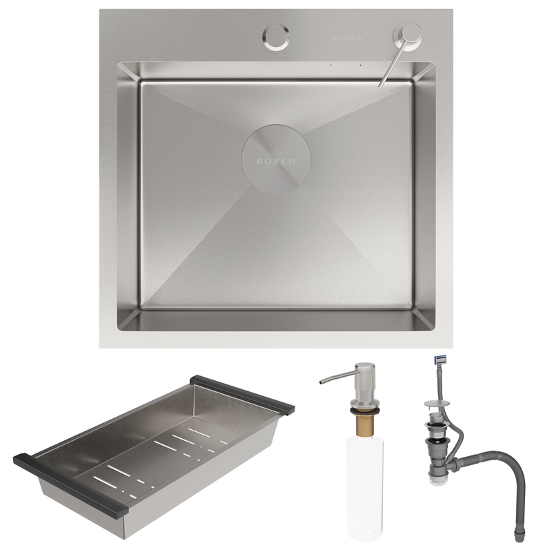 Мойка для кухни Roxen Simple 50x48, врезная, с коландером, дозатором, текстура песок, сатин. Все характеристики |