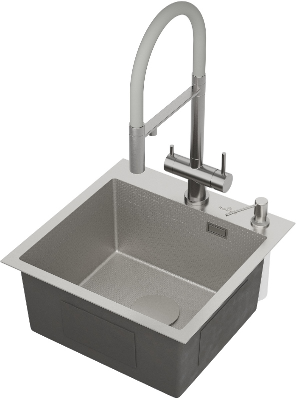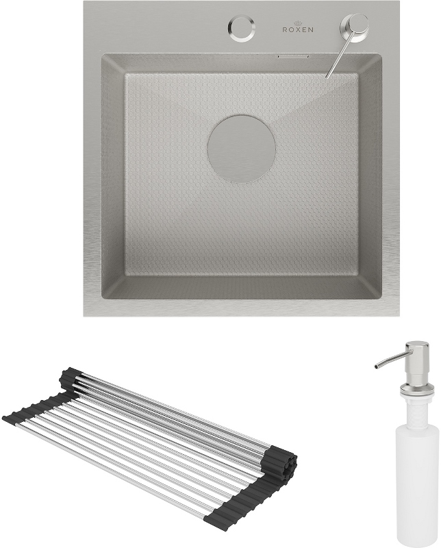 Мойка для кухни Roxen Snake 45x45, врезная, с рол-матом, дозатором, текстурный сатин. Все характеристики |