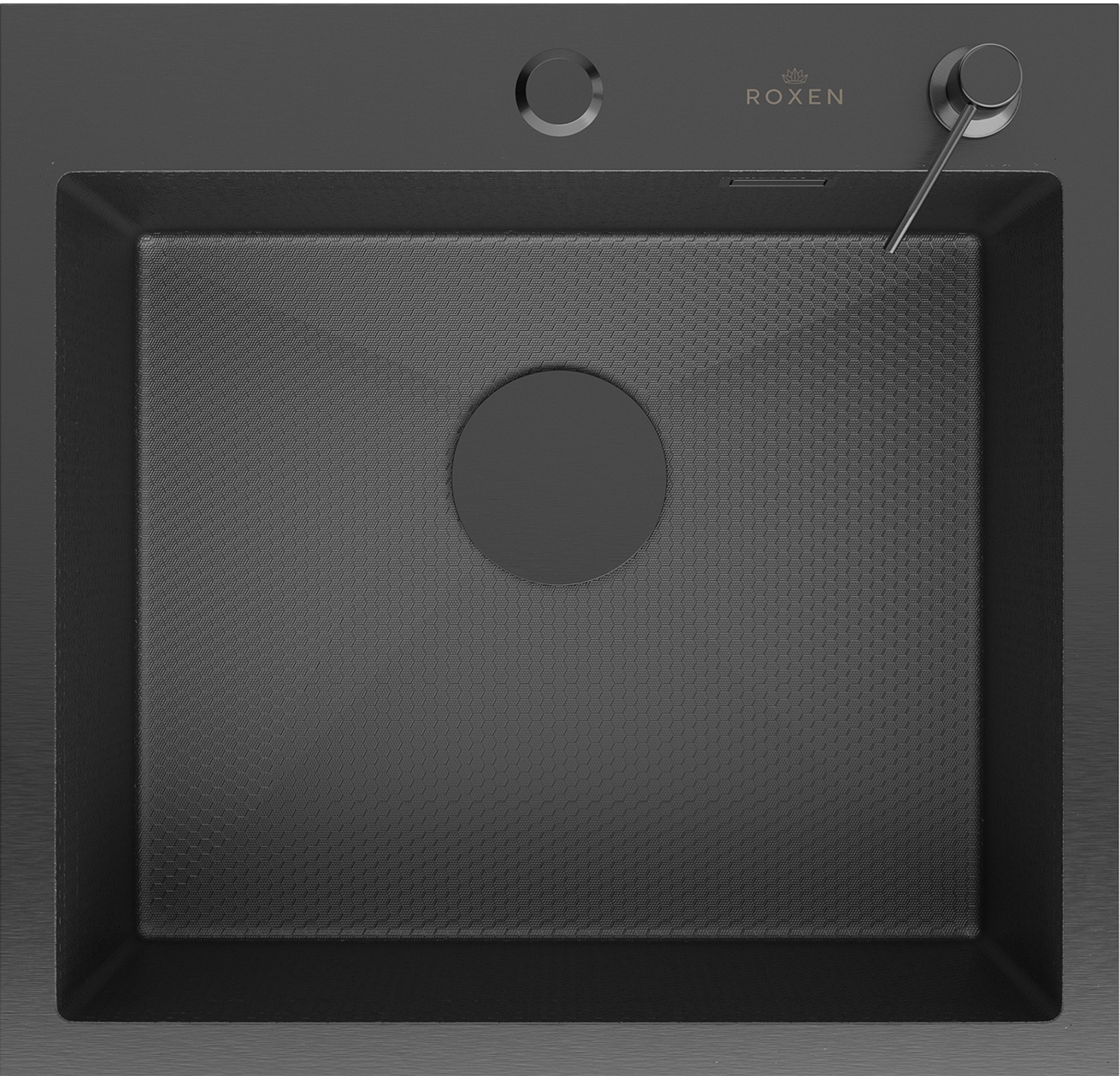 Мойка для кухни Roxen Snake PVD 50x48, врезная, с коландером, дозатором, текстурный графит. Все характеристики |