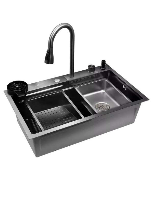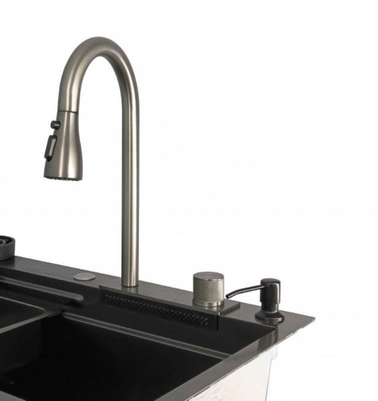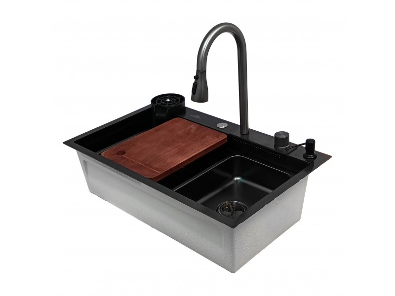 Мойка для кухни Wisent WG37546B 75x46, врезная, со смесителем, аксессуарами, PVD, графит. Все характеристики |