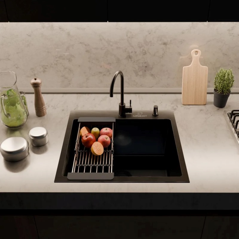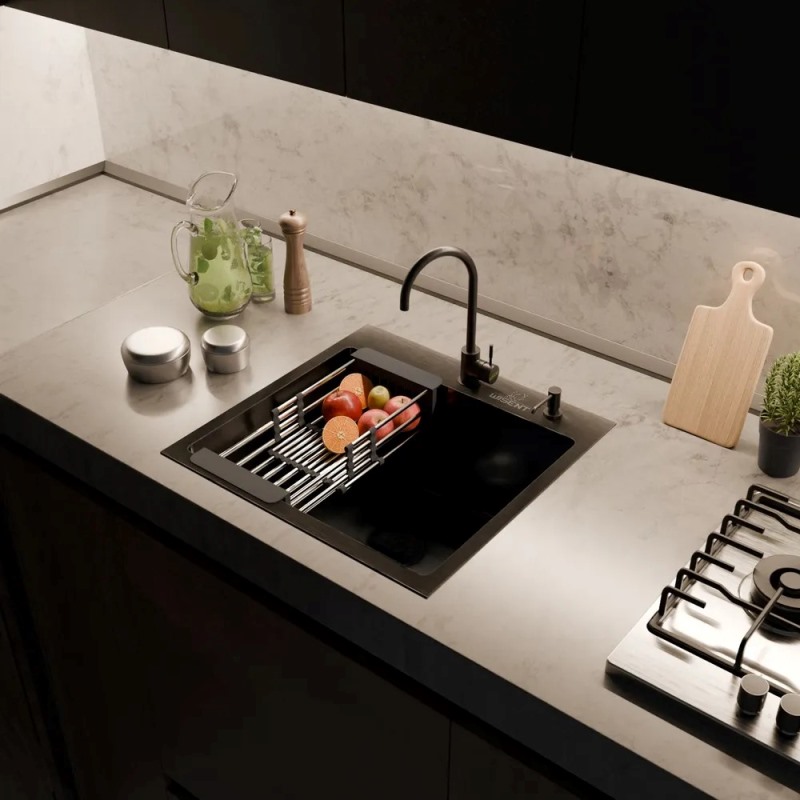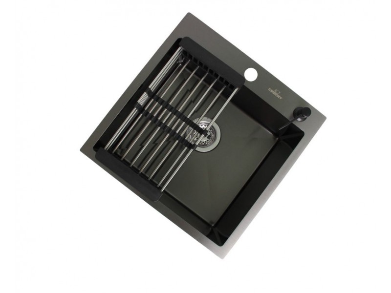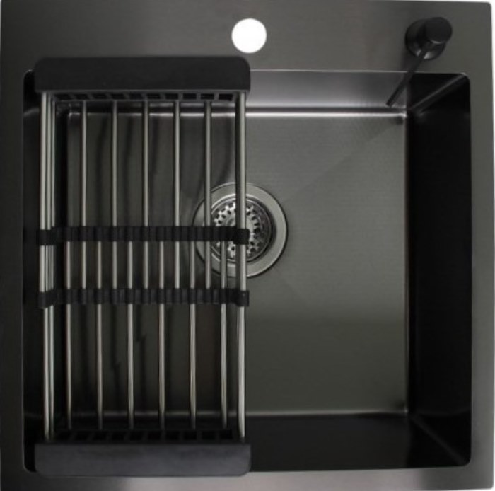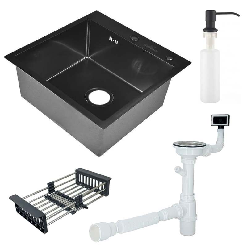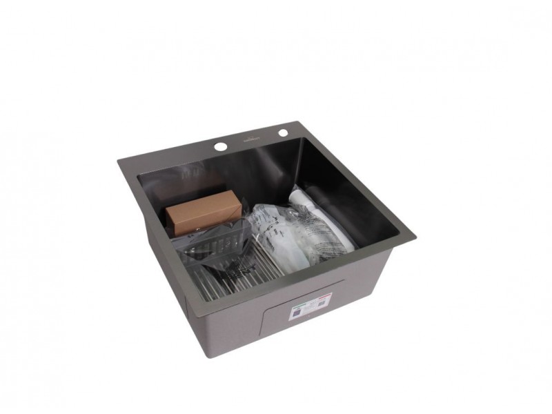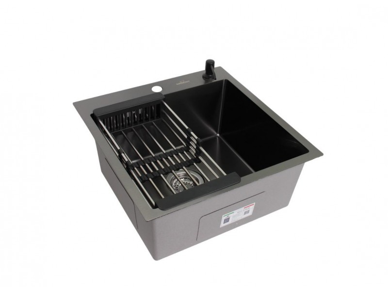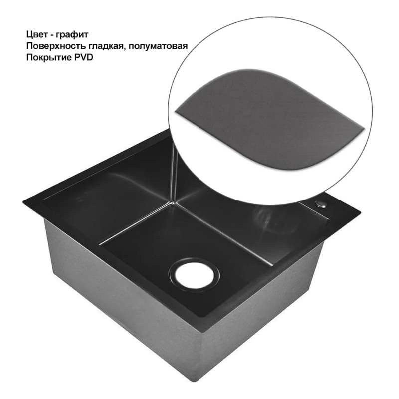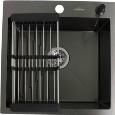 Мойка для кухни Wisent WGS-35050B 50x50, врезная, с коландером, дозатором, PVD, графит. Все характеристики |