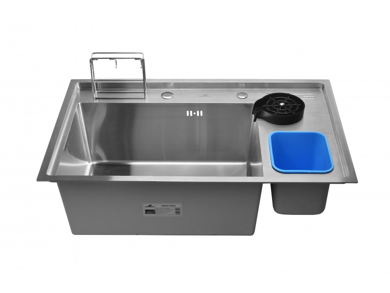 Мойка для кухни Wisent WM37850 78x50, врезная, с ринзером, мусорным контейнером, сатин. Все характеристики |