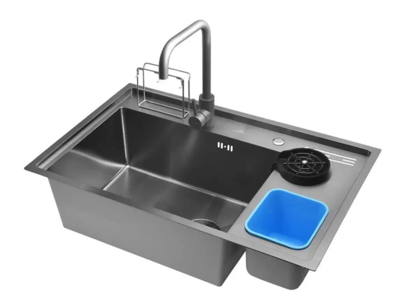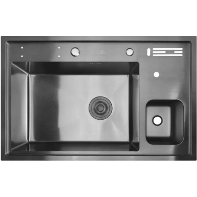 Мойка для кухни Wisent WM37850B 78x50, врезная, с ринзером, мусорным контейнером, графит. Все характеристики |