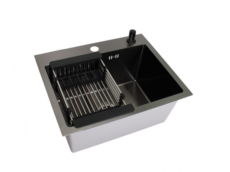 Мойка для кухни Wisent WS35044B 50x44, врезная, с коландером, дозатором, PVD, графит. Все характеристики |