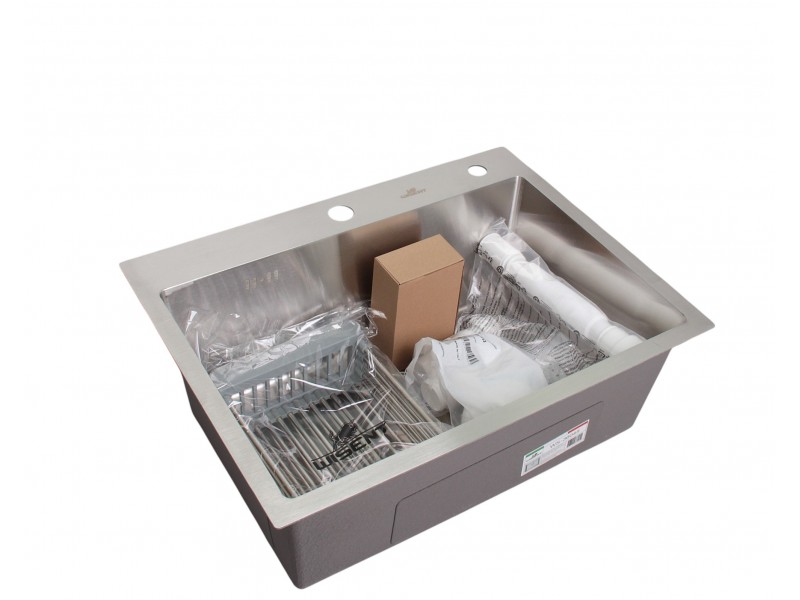 В комплекте: сифон, дозатор для жидкого мыла, коландер.Дополнительно комплектуется: смеситель. |