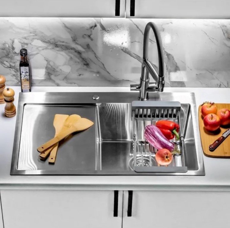 Кухонная мойка Wisent WS-36550-R 65x50 правая, врезная с дозатором и коландером из нержавеющей стали.Свойства: Материал-нержавеющая сталь SUS304 толщиной 0.8-3 мм. Гладкая, полуматовая поверхность. Шумопоглощающее покрытие состоит из резиновой накладки на дне специального противошумного состава. Чаша мойка справа, крыло-слева. Раковина для кухни Wisent WS-36550-R-114 65x50 см врезного монтажа. Производство. Компания Wisent выпускает сантехнику высокого класса с применением передовых немецких технологий. Заводы расположены в Китае и странах СНГ. Качество. Экологически чистые безопасные материалы. Продукция соответствует международным сертификатам. Оптимальное соотношение цены и качества под разные предпочтения. Изображение и цвет на мониторе могут отличаться от оригинала. Комплектность:
