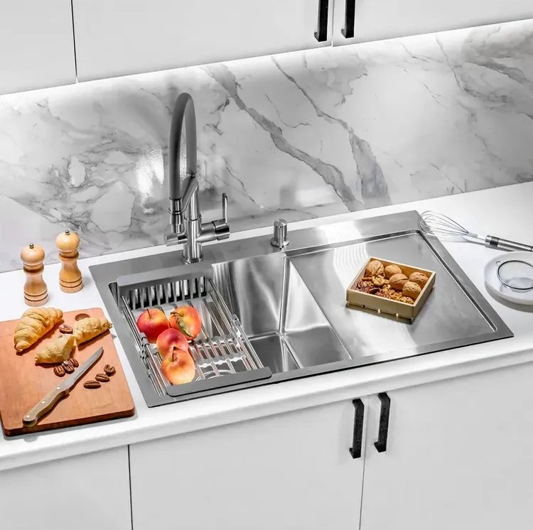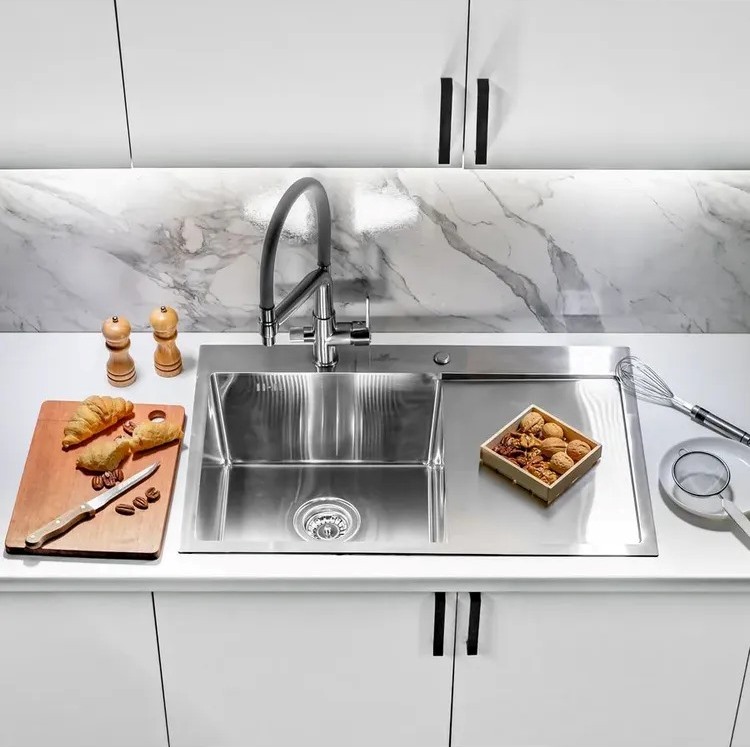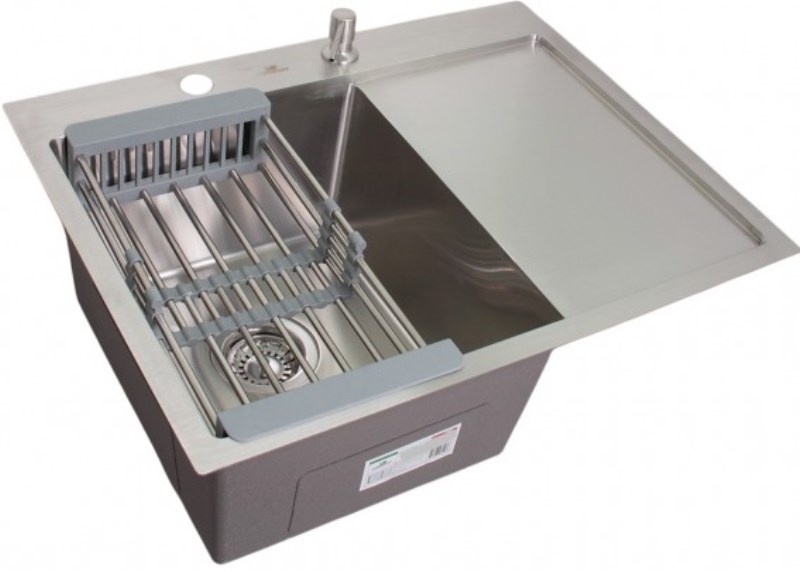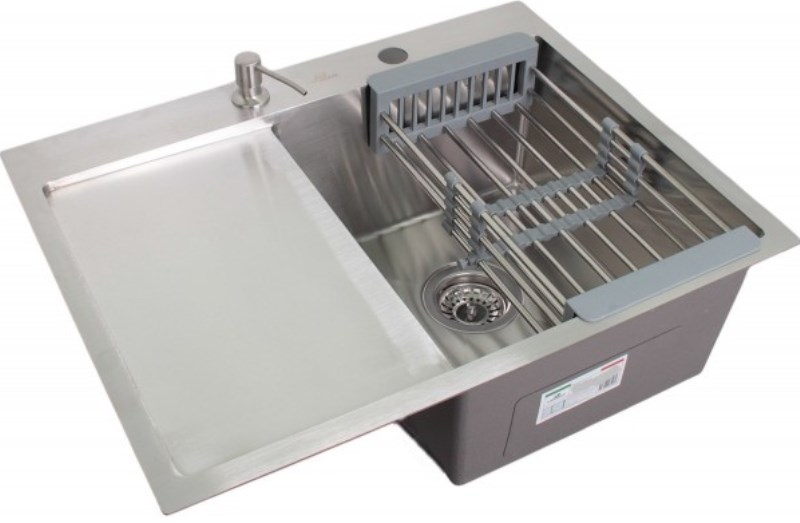 Кухонная мойка Wisent WS-37851 78x51 левая, врезная с дозатором и коландером из нержавеющей стали.Свойства: Материал-нержавеющая сталь SUS304 толщиной 0.8-3 мм. Гладкая, полуматовая поверхность. Шумопоглощающее покрытие состоит из резиновой накладки на дне специального противошумного состава. Чаша мойка слева, крыло-справа. Раковина для кухни Wisent WS-37851-L-114 78x51 см врезного монтажа. Производство. Компания Wisent выпускает сантехнику высокого класса с применением передовых немецких технологий. Заводы расположены в Китае и странах СНГ. Качество. Экологически чистые безопасные материалы. Продукция соответствует международным сертификатам. Оптимальное соотношение цены и качества под разные предпочтения. Изображение и цвет на мониторе могут отличаться от оригинала. Комплектность: