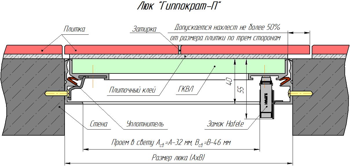 Люк под плитку Хаммер Гиппократ-П 30x60. Все характеристики |