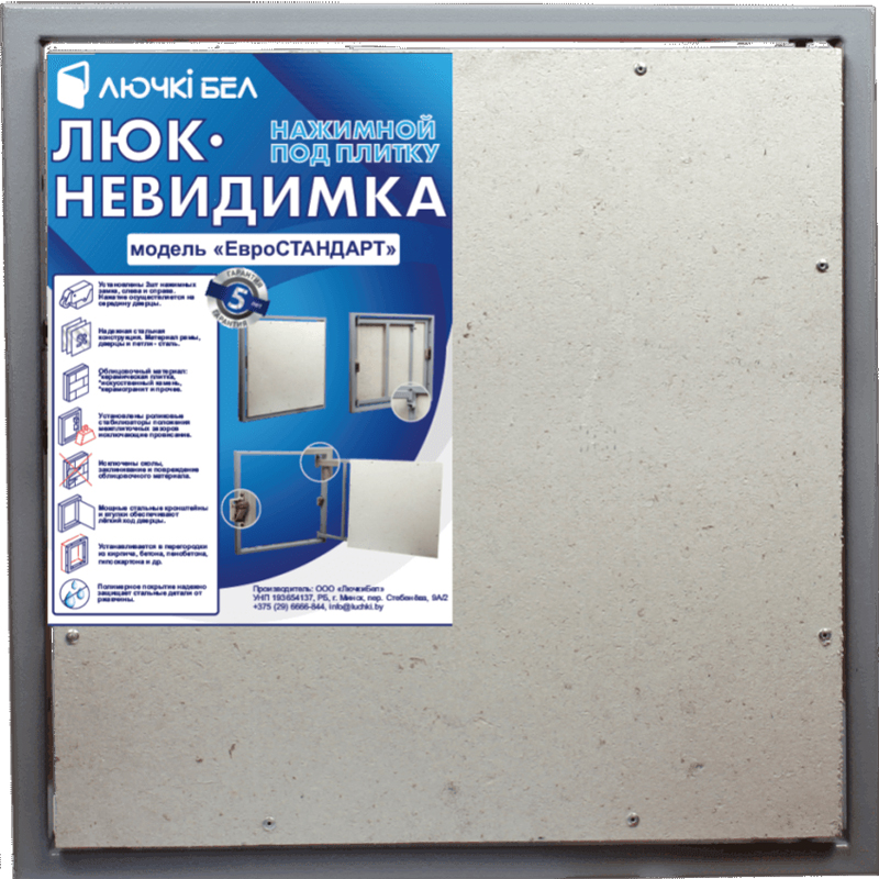 Люк под плитку ЛючкиБел Евростандарт 80x120, нажимной. Все характеристики