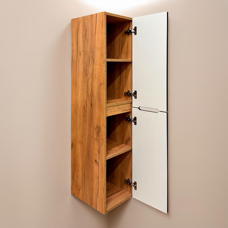Шкаф-пенал Акваль Токи 30 подвесной, дуб золотой крафт\шадэ хвойный. Все характеристики |