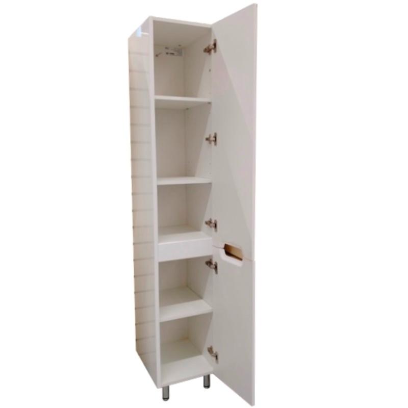 Шкаф-пенал Garda Marko23_300R, правый, 04.23.300R из влагостойкой МДФ.Свойства. Материал корпуса ЛДСП, толщина-16 мм. Боковины корпуса и фасады из МДФ, толщина-16 мм. Задняя стенка из ДВП, толщина-3 мм. Покрытие: высоко-глянцевая белая эмаль (Италия). 2 слоя краски. Петли с доводчиком. 2 полки в верхнем отделении, 1 полка в нижнем, материал-ЛДСП. Монтаж на 4 ножки для высокой устойчивости. Требуется дополнительное крепление к стене на мебельный уголок с дюбелем. Шкаф-пенал Marko23_300R 30 см, правый в собранном виде. Производство. Компания Garda занимает лидирующую позицию в Беларуси по выпуску фасадов из МДФ более 20 лет. В 2019 году освоила новое направление в изготовлении мебели для ванных комнат. Высокотехнологичное оборудование. Качество. Материалы мировых брендов. 5 ступеней нанесения эмали видимых частей фасадов и боковин. Фурнитура с доводчиками известных производителей для плавного хода дверей и ящиков. Контроль на каждом этапе производства. Изображение и цвет на мониторе могут отличаться от оригинала. Комплектность: