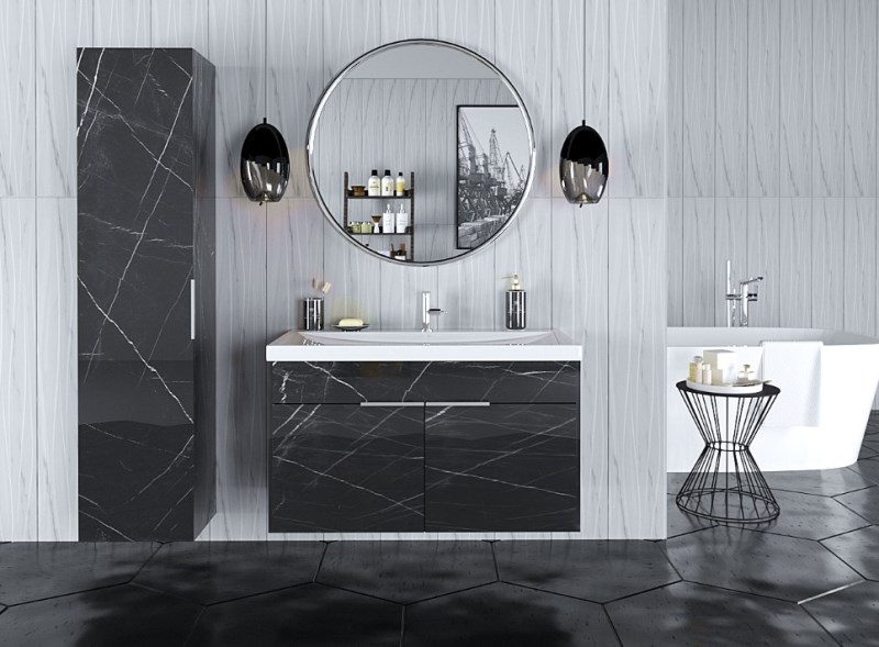 Шкаф-пенал Garda Venice22н_300_PVC, 18.22н.300.PVC, черный мрамор из влагостойкой МДФ. Свойства. Фасад из МДФ, покрытие экошпон PVC. Цвет-черный мрамор. Боковины корпуса из МДФ, покрытие экошпон PVC, цвет-черный мрамор. 1 дверь, 4 полки: 3-стекло, 1-ЛДСП. Петли с доводчиком. Задняя стенка ДВП- вставлена в паз. Пенал подвесной Venice22н_300_PVC 30 см в ванную. Производство. Компания Garda занимает лидирующую позицию в Беларуси по выпуску фасадов из МДФ более 20 лет. В 2019 году освоила новое направление в изготовлении мебели для ванных комнат. Высокотехнологичное оборудование. Качество. Материалы мировых брендов. 5 ступеней нанесения эмали видимых частей фасадов и боковин. Фурнитура с доводчиками известных производителей для плавного хода дверей и ящиков. Контроль на каждом этапе производства. Изображение и цвет на мониторе могут отличаться от оригинала. Комплектность: