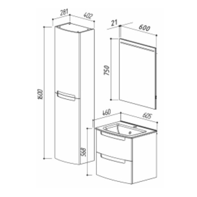 Шкаф-пенал подвесной Belux Бари ПН 40. Все характеристики |