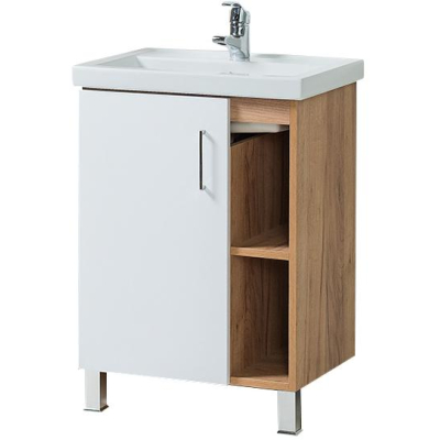 Тумба для умывальника Акваль Лофт 60 В2.5.01.6.0.1, белый из влагостойкой МДФ.Свойства. Корпус-ламинированная ДСП. Фасад-пленочная МДФ. Задняя стенка ДВП. Тумба для умывальника Лофт 60 см В2.5.01.6.0.1 с распашой дверью и открытыми полками. Продается в разобранном виде. Производство. Компания Мебесон выпускает мебель Акваль для ванных комнат с 2002 года. Крупные растущие производственные мощности. Эффективные современные технологии. Продукция широко представлена по всему СНГ. Качество. Надежные шкафы и зеркала выполнены из материалов, устойчивых к постоянной повышенной влажности и воздействию химических веществ. Фурнитура из нержавеющей стали, покрытой хромом, от известных производителей. Продукция соответствует всем требованиям и нормам РБ. Дизайн. Красивая модная мебель различных стилевых направлений. Вписывается в классические и ультрасовременные интерьеры. Широкий размерный ряд. Отличное решение для небольших санузлов по выгодной цене от производителя. Изображение и цвет на мониторе могут отличаться от оригинала. Комплектность: