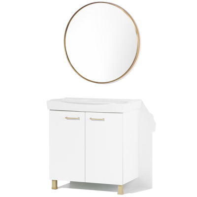 Тумба для умывальника Акваль Порто 80 напольная, белый\золото. Все характеристики |