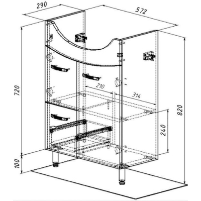Тумба для умывальника Акваль София 61, левая. Все характеристики |