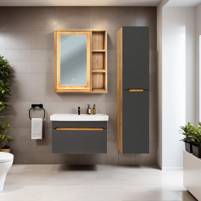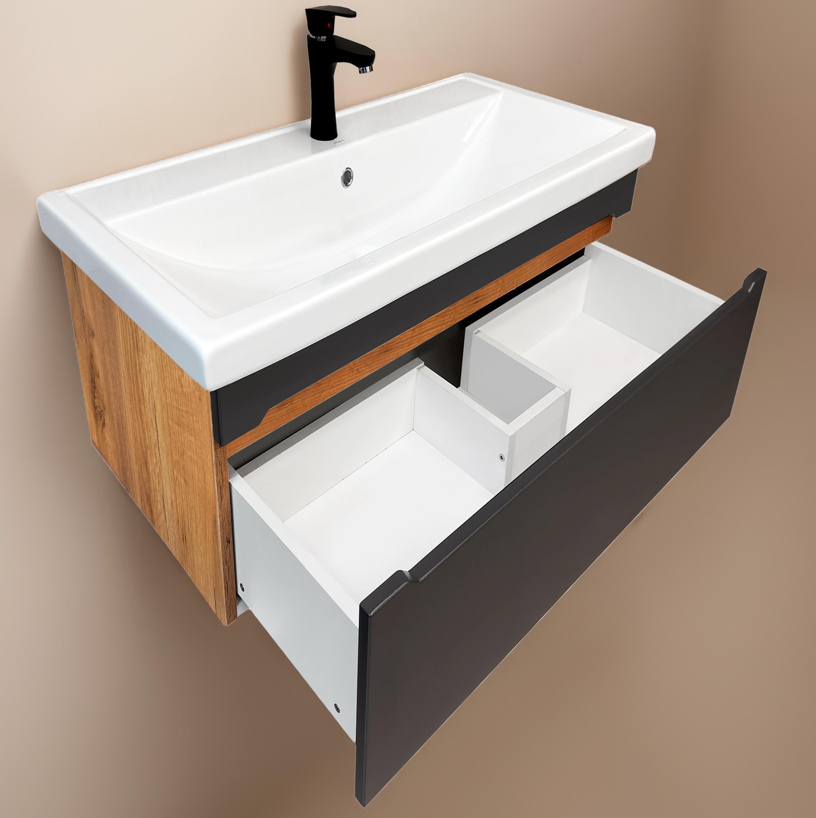 Тумба для умывальника Акваль Токи 60 Фостер подвесная, 1 ящ., дуб золотой крафт\шадэ маренго. Все характеристики |