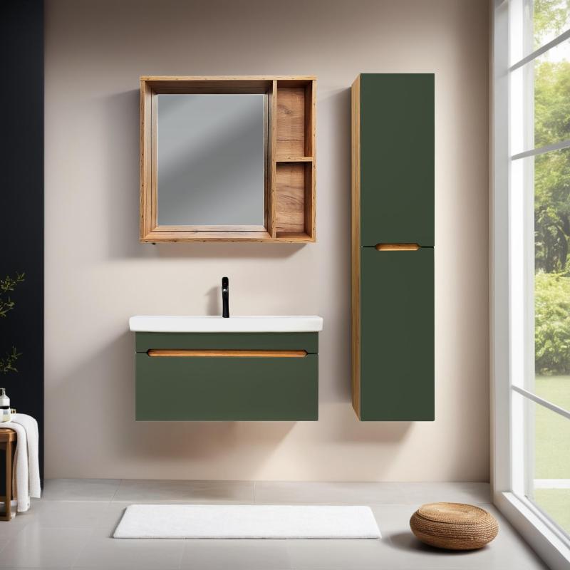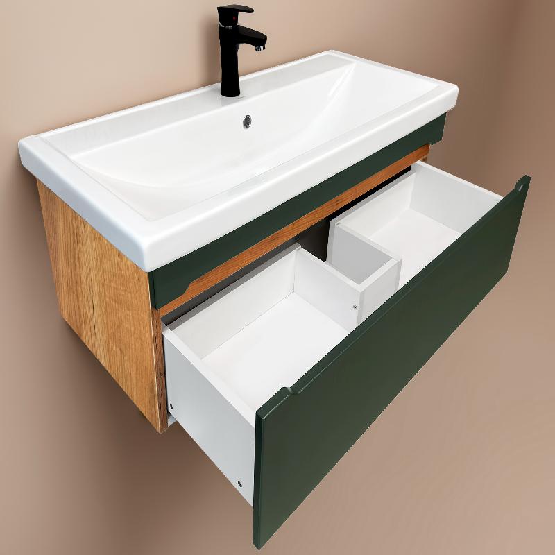 Тумба для умывальника Акваль Токи 70 Фостер подвесная, 1 ящ., дуб золотой крафт\шадэ хвойный. Все характеристики |