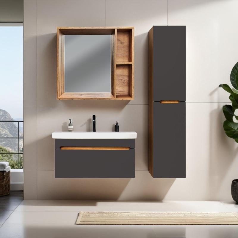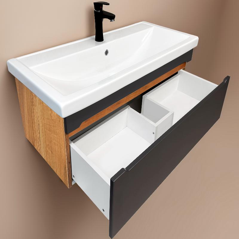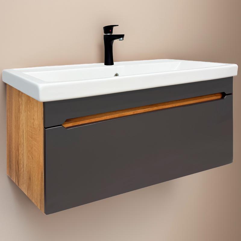 Тумба для умывальника Акваль Токи 70 Фостер подвесная, 1 ящ., дуб золотой крафт\шадэ маренго. Все характеристики |