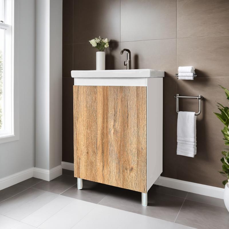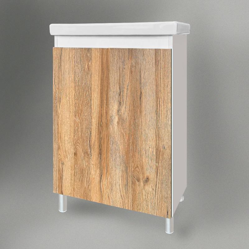 Тумба для умывальника Акваль Виктория 50 Фостер напольная, 1 дв., дуб вотан крафт\белый. Все характеристики |