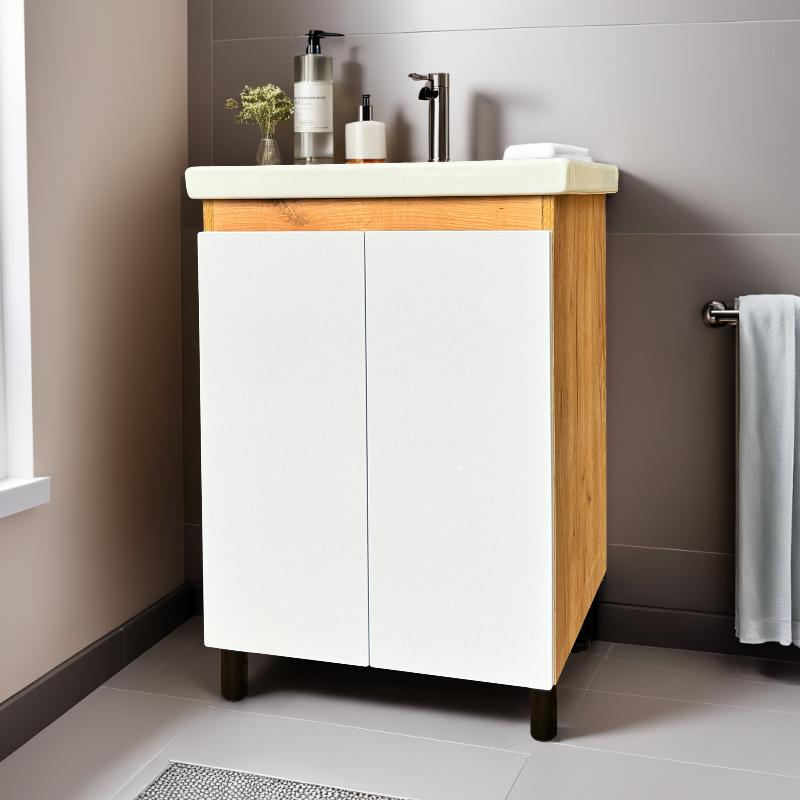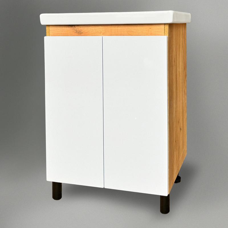 Тумба для умывальника Акваль Виктория 60 Фостер напольная, 2 дв., дуб крафт\белый. Все характеристики |