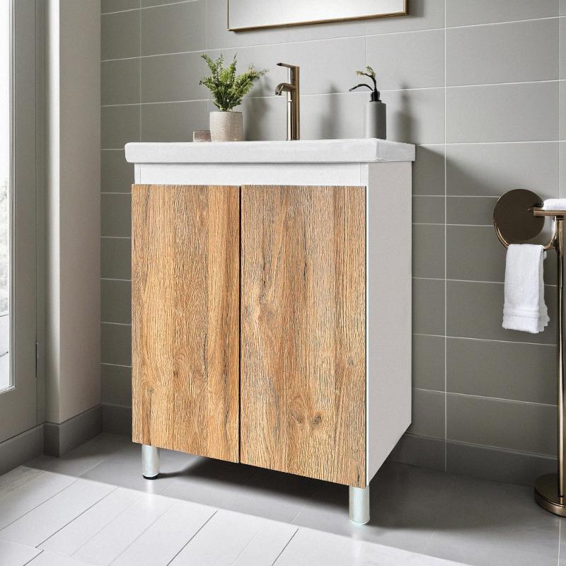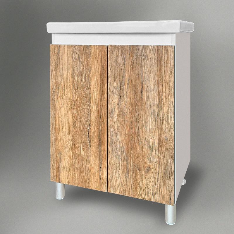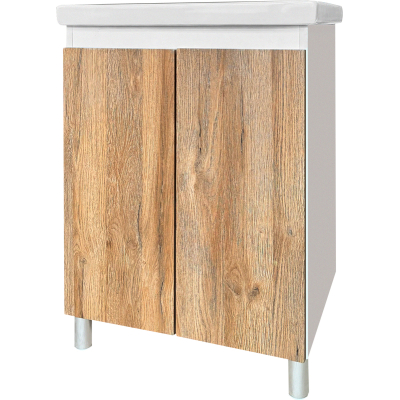 Тумба для умывальника Акваль Виктория 60 Тобаго напольная, 2 дв., дуб вотан крафт\белый. Все характеристики |
