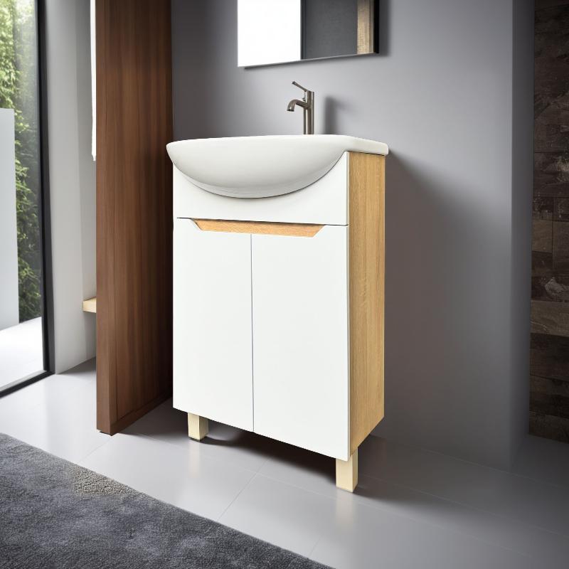 Тумба для умывальника Акваль Зара 50 Уют\Рива напольная, 2 дв., дуб сонома\белый. Все характеристики |