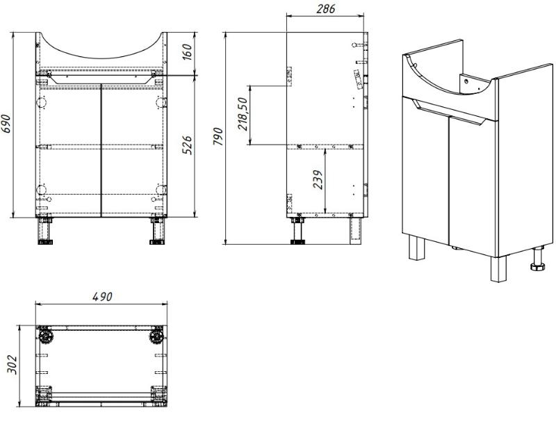 Дополнительно комплектуется: умывальник Уют 50 или Рива 50, смеситель, сифон. |
