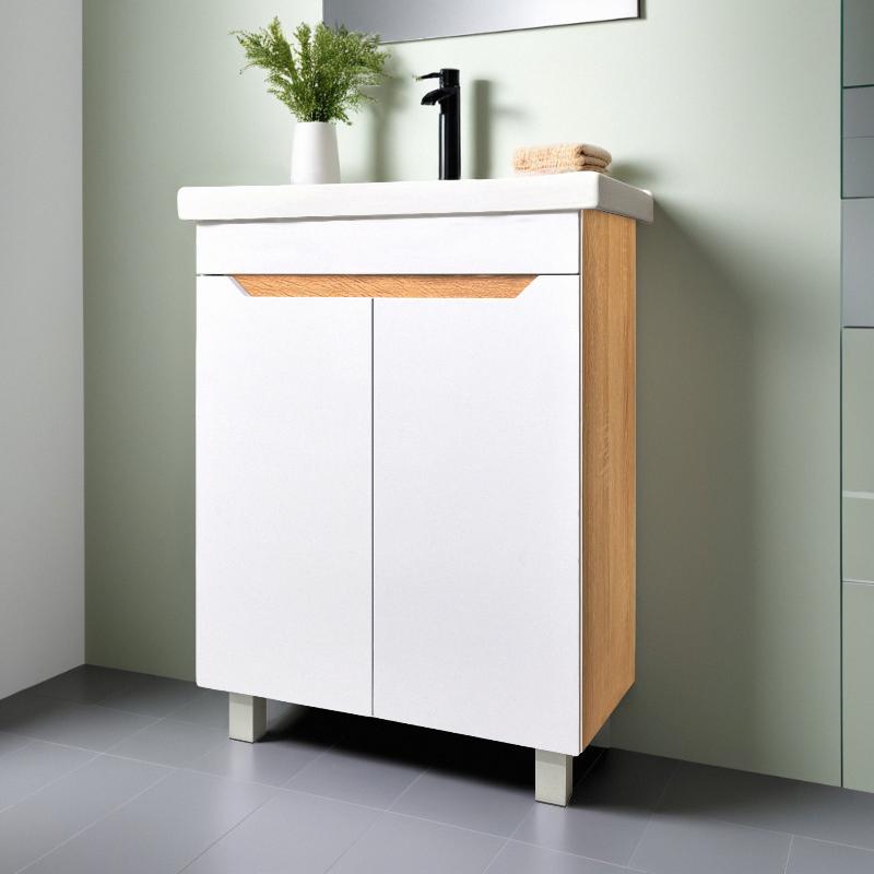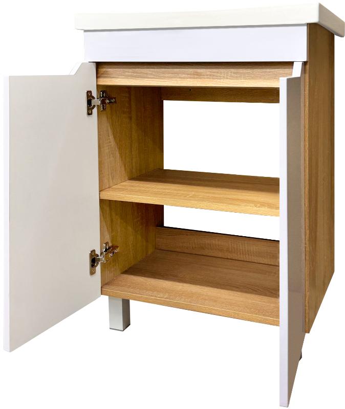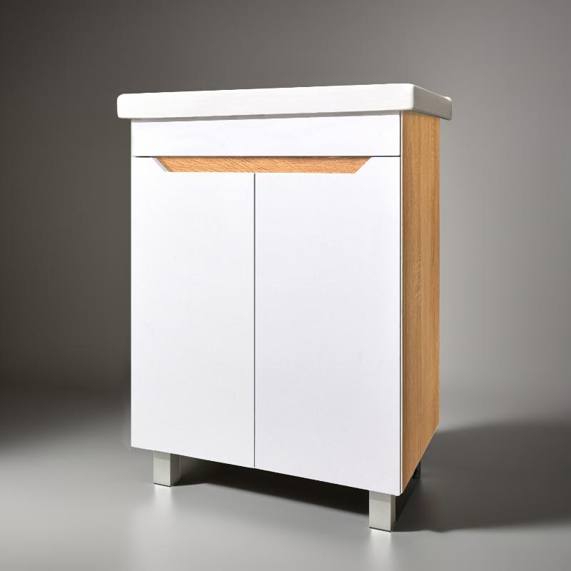 Тумба для умывальника Акваль Зара 60 Тобаго напольная, 2 дв., дуб сонома\белый. Все характеристики |