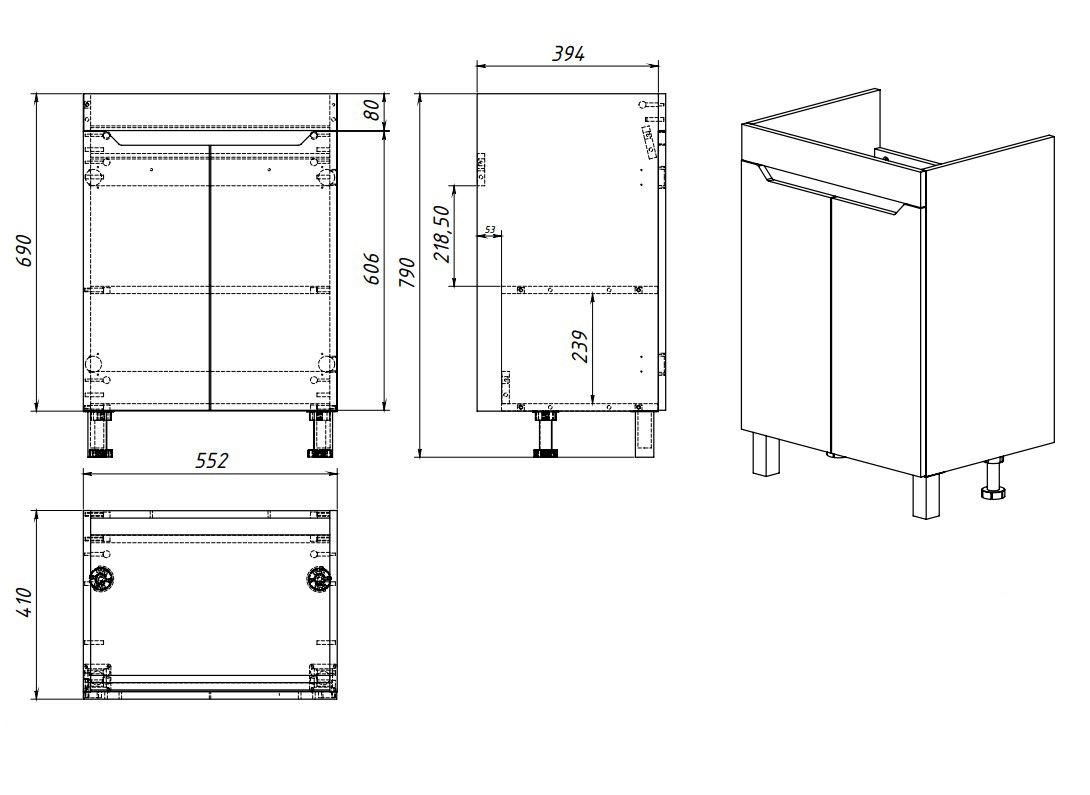 Дополнительно комплектуется: умывальник Тобаго 60, смеситель, сифон. |