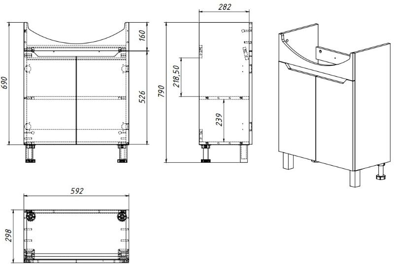 Тумба для умывальника Акваль Зара 60 Уют напольная, 2 дв., белый. Все характеристики |