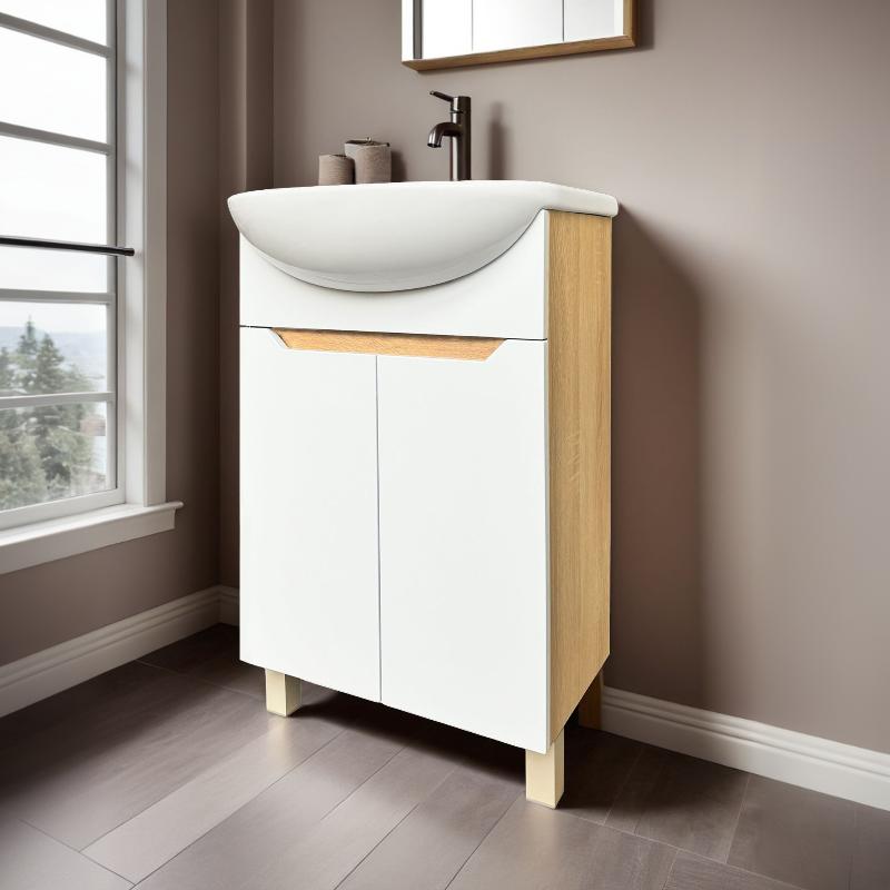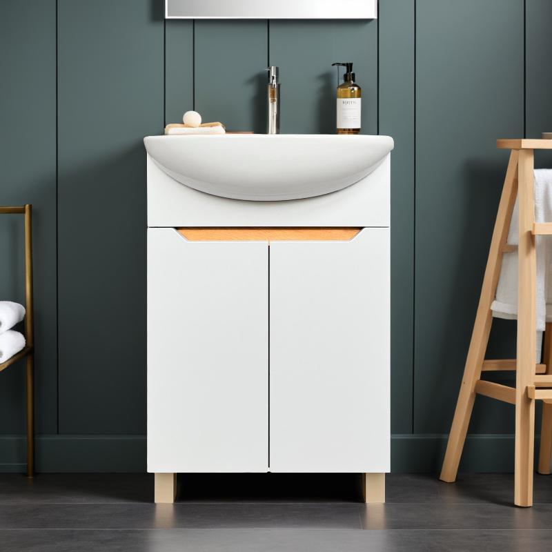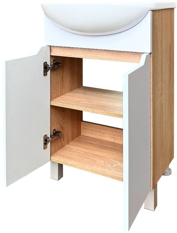 Тумба для умывальника Акваль Зара 60 Уют напольная, 2 дв., дуб сонома\белый. Все характеристики |