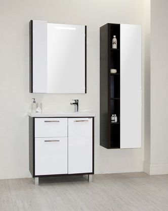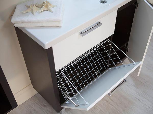 Тумба для умывальника Акватон Брайтон 76, венге 1A186001BR500 с корзиной для белья. Материал фасада-МДФ, цвет-белый глянец. Материал корпуса-влагостойкая ДСП толщиной 2.2 см, цвет-венге. Ширина тумбы указана с учетом размеров умывальника. Изображение и цвет на мониторе могут отличаться от оригинала. Комплектность: