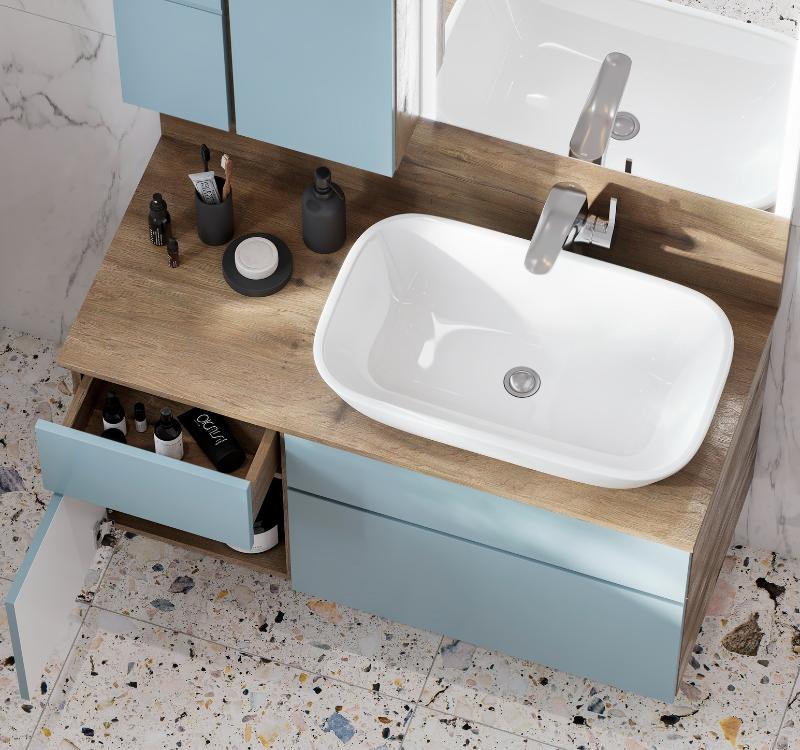 Тумба для умывальника Акватон Мишель 100 1A256901MIX30 из влагостойкой МДФ.Свойства. Фасады из МДФ, покрытие-матовая пленка, цвет-Фьорд (бирюзовый оттенок)/декор Дуб Рустикальный. Корпус из влагостойкой ламинированной плиты, цвет-декор Дуб Рустикальный. Повышенная влагостойкость и сопротивляемость износу. Ионы серебра в составе материалов, предотвращающие размножение бактерий. Справа ящики с доводчиками полного выдвижения, слева верхний ящик и нижняя распашная дверь. Фурнитура с покрытием, стойким к механическим повреждениям и воздействию влаги (Европа). Шкаф под раковину Мишель 100 см 1A256901MIX30 с нажимным открыванием ящиков и двери Push-to-open для плавного и бесшумного хода. Размеры тумбы указаны без учета габаритов умывальника. Надежность. Навесы Camar (Италия) выдерживают нагрузку до 120 кг. Система безопасного крепления. Защита от случайного срыва со стены. Регулировка навесов в вертикальном и горизонтальном направлениях в широком диапазон. Стеновая панель крепится на скотч и двухсторонний герметик. Производство. Компания Акватон крупнейший производитель мебели для ванных комнат, литьевых умывальников и кухонных моек из мрамора в России и СНГ с 2000 года. С 2011 года входит в состав международной компании Roca Group, являющейся мировым лидером в сантехнике для ванных комнат. Качество. Марка №1 в России с 2009 года. Продукция соответствует всем международным и российским стандартам. Часть ассортимента защищена патентами. Контроль на всех этапах производства, начиная с выбора сырья и материалов и заканчивая проверкой готового изделия. Тестирование по европейским стандартам Roca Group. Дизайн. Собственный конструкторский отдел. Широкий модельный ряд, отвечающий современным тенденциям и классическим стилям. Гарантия. Длительная гарантия - 3 года. Изображение и цвет на мониторе могут отличаться от оригинала.Комплектность: