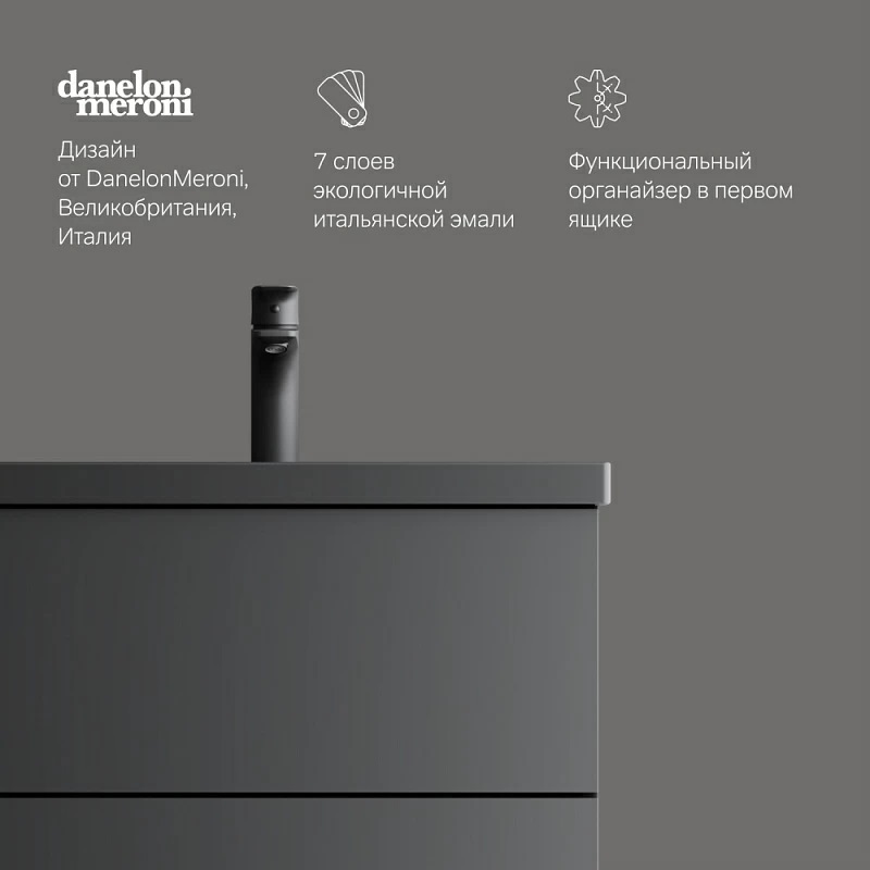 Тумба для умывальника AM.PM Gem 60, подвесная, черный матовый. Все характеристики |