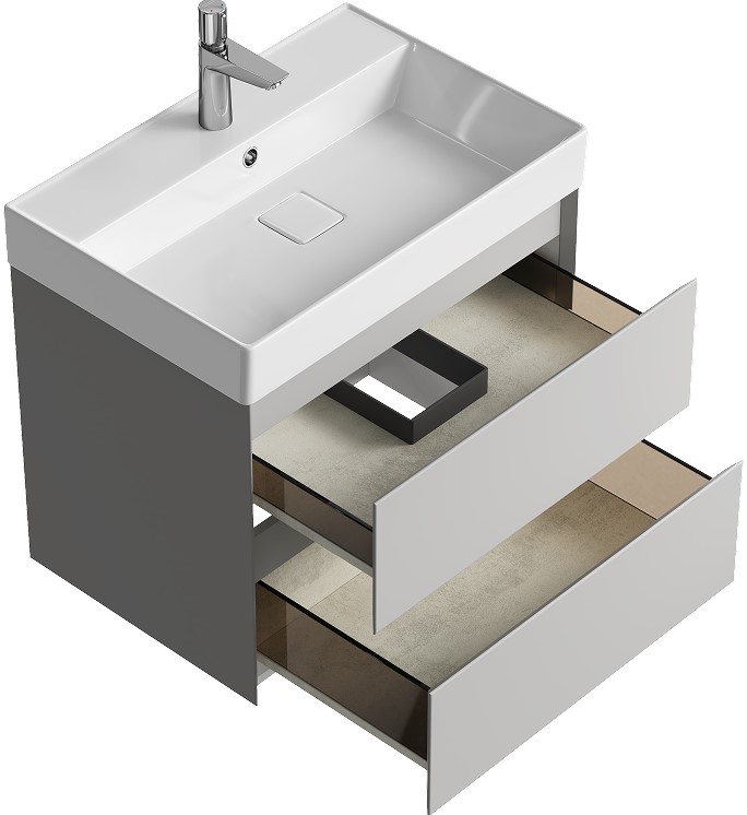Тумба для умывальника Aqwella 5 Stars Geometria 65 Вилис подвесная, 2 ящ., серый туман. Все характеристики |