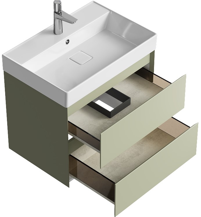 Тумба для умывальника Aqwella 5 Stars Geometria 65 Вилис подвесная, 2 ящ., шалфей зеленый. Все характеристики |