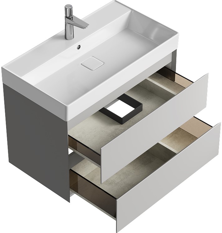 Тумба для умывальника Aqwella 5 Stars Geometria 80 Вилис подвесная, 2 ящ., серый туман. Все характеристики |