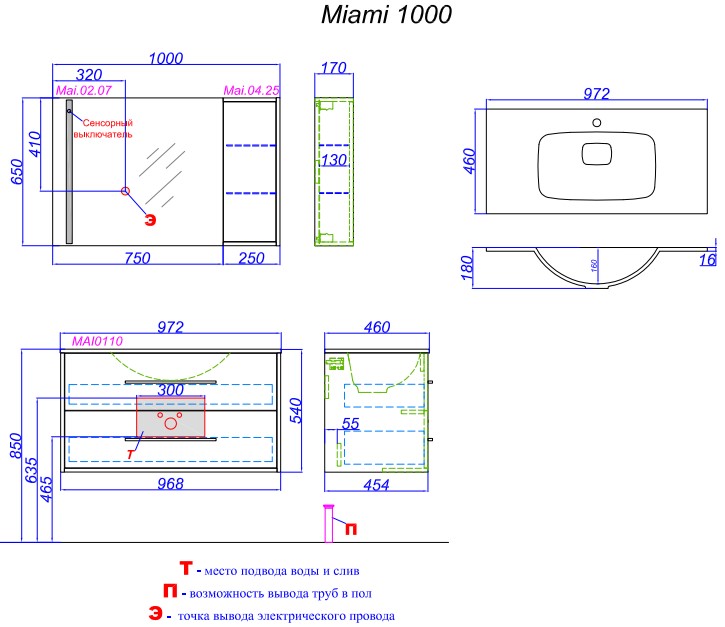 Дополнительно комплектуется: умывальник Malaga 100 Mal.10.04.D, смеситель, сифон. |