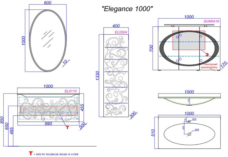 Дополнительно комплектуется: умывальник Elegance 100 El.10.04.D, смеситель, сифон. |