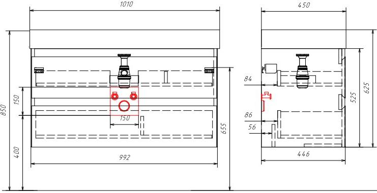 Тумба для умывальника Aqwella 5 Stars Geometria 100 Вилис подвесная, 2 ящ., белый матовый. Все характеристики |