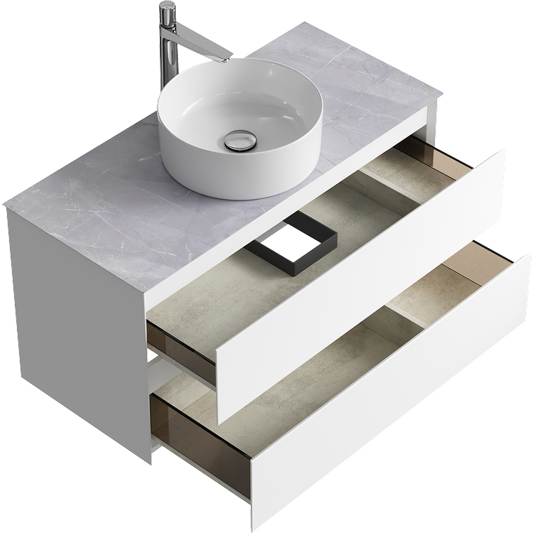 Подвесная тумба под раковину Aqwella 5 Stars Geometria 100 GE01102WM из влагостойкой МДФ.Свойства. Фасад и корпус из МДФ, покрытой матовой краской. Направляющие скрытого монтажа с функцией плавного скольжения и мягкого закрывания. Внутренняя отделка ящиков под светлый камень, боковины из тонированного стекла. Шкаф для раковины Geometria 100 см GE01102WM в ванную комнату. Размеры тумбы указаны с учетом размера умывальника. Производство. Компания Аквелла с 2001 года крупнейший производитель мебели для ванных комнат в России. Высокоточное немецкое и итальянское оборудование. Современные технологии и инновации. Качество. Вся продукция отвечает международному ISO 9001:2000, европейским и российским стандартам. Только европейское экологически безопасные сырье и комплектующие. Постоянный участник крупнейших российской и зарубежной выставок Mosbuild (Москва) и ISH (Франкфурт). Изображение и цвет на мониторе могут отличаться от оригинала. Комплектность: